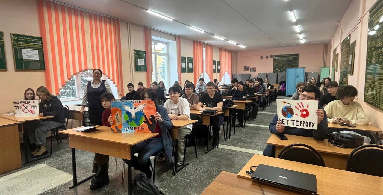 В Колледже автомобильного транспорта и агротехнологий прошло воспитательное мероприятие на актуальную тему «Терроризм — это вызов для человечества в целом». Организатором выступила заместитель директора по воспитательной работе Ирина Юдина. В ходе встречи участники обсудили одну из самых острых проблем современности — терроризм, который представляет собой не только угрозу национальной и международной безопасности, но и прямую опасность для жизни и благополучия миллионов людей по всему миру.