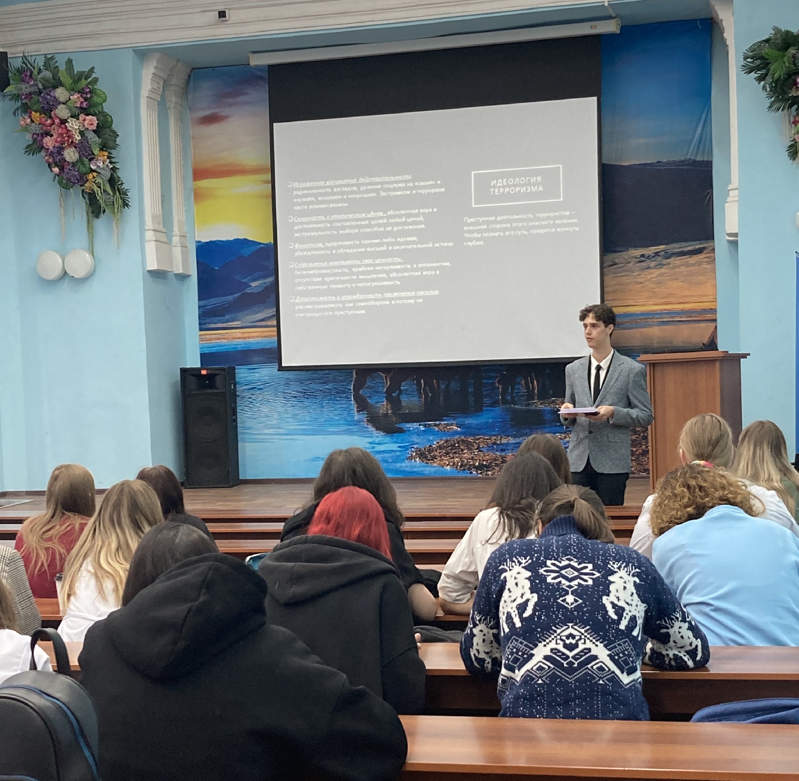 Для студентов Факультета биотехнологий и ветеринарной медицины Иркутского государственного аграрного университета имени А.А. Ежевского состоялась лекция на тему «Идеология терроризма», направленная на формирование у обучающихся правовой грамотности, критического мышления и навыков безопасного поведения.
