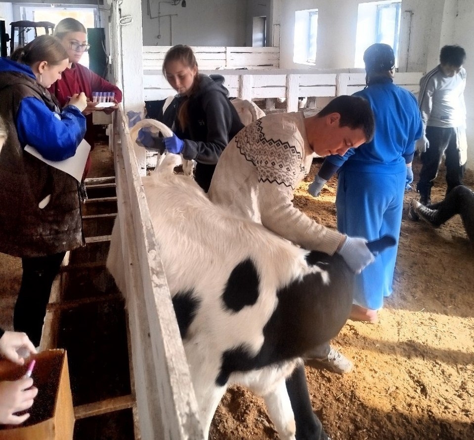 Участники кружка «Ветеринарные эпизоотологи и паразитологи», под руководством опытных наставников провели учебную практику по взятию крови у крупного рогатого скота. Полученные образцы будут использованы для отработки методов лабораторной диагностики.