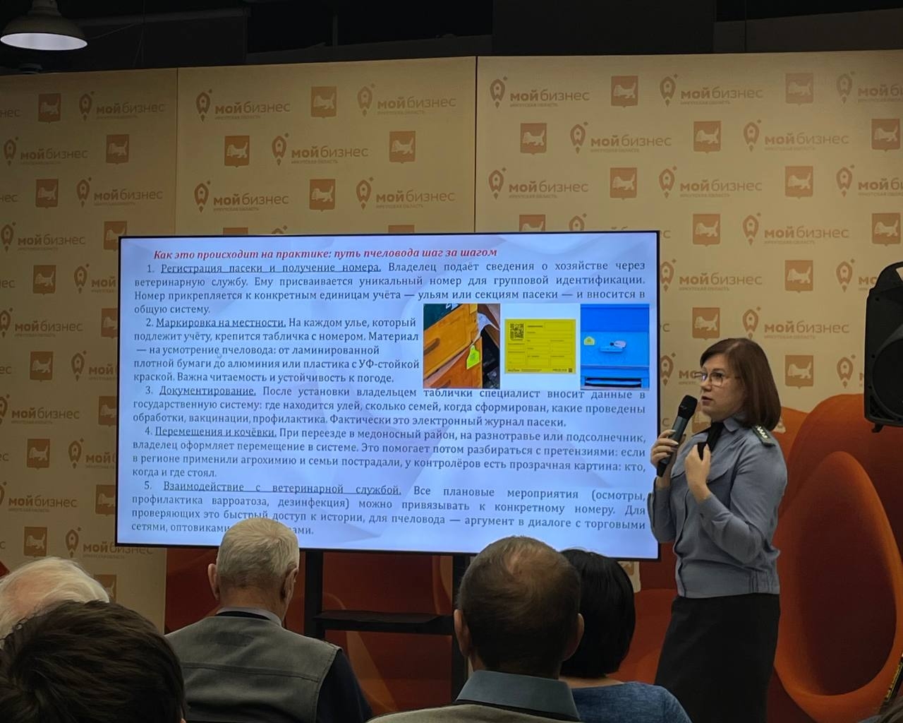 Особое внимание было уделено ветеринарно-санитарным аспектам. Елена Смаркалова, начальник отдела федерального государственного ветеринарного надзора Управления Россельхознадзора по Иркутской области и Республике Бурятия, рассказала о требованиях по маркировке и учету пчелосемей в компоненте «Хорриот» ФГИС «ВетИС». А Августа Шевченко, начальник отдела противоэпизоотических мероприятий Иркутской городской станции по борьбе с болезнями животных, представила актуальную информацию по профилактике заболеваний пчёл.