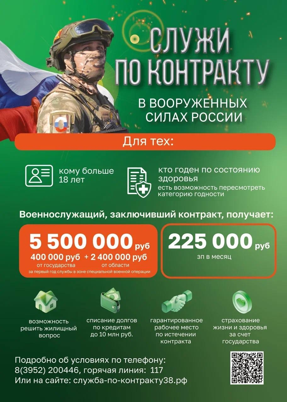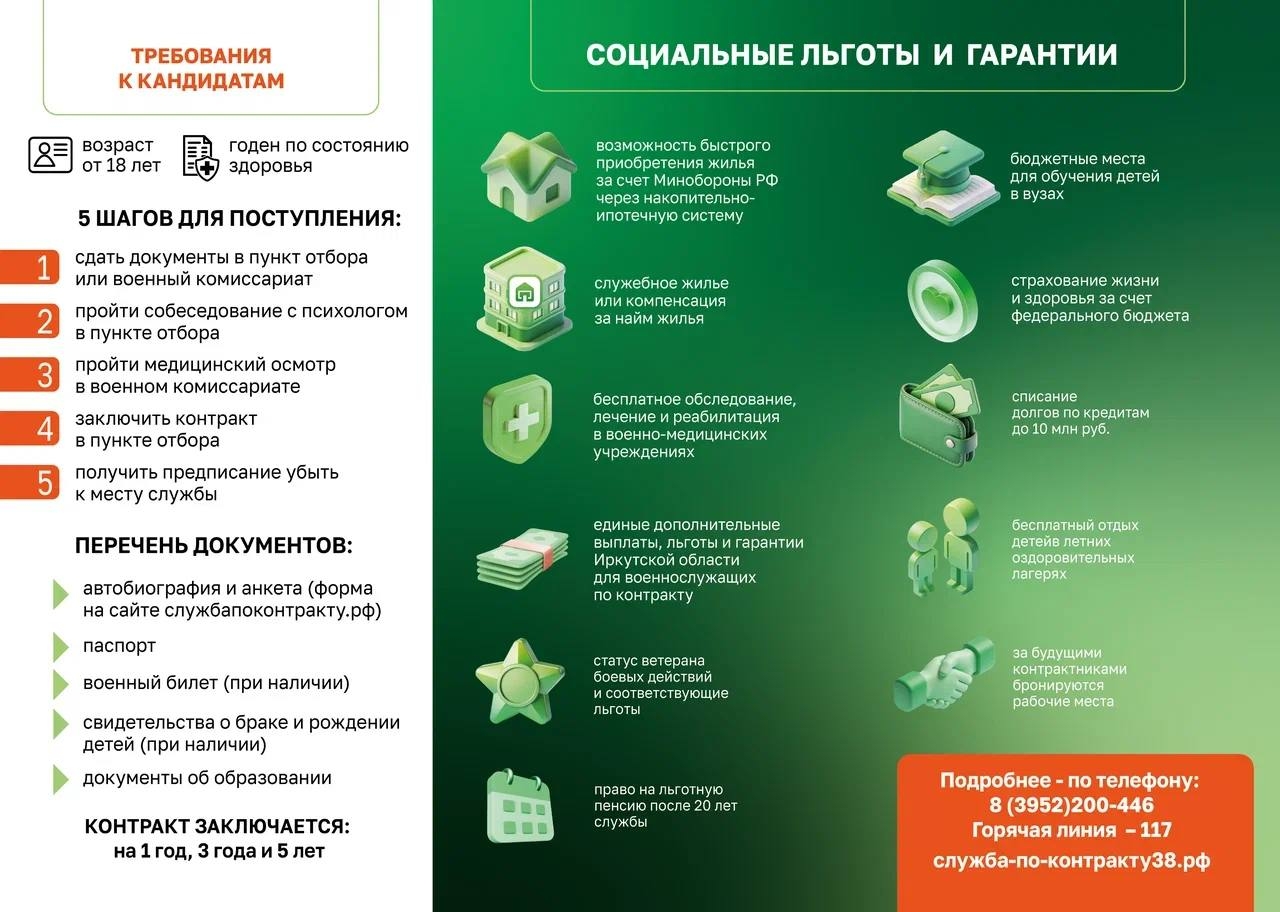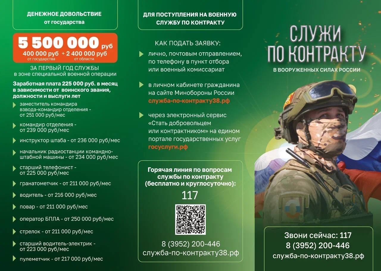 Как получить информацию? Переходите по ссылке: https://max.ru/id3811024304_biz/AZvAH1naGXs в наш канал МАХ (разместили 2 информативных видеоролика). Позвоните по короткому номеру 117, затем нажмите 4. Посетите официальный сайт: служба-по-контракту38.рф