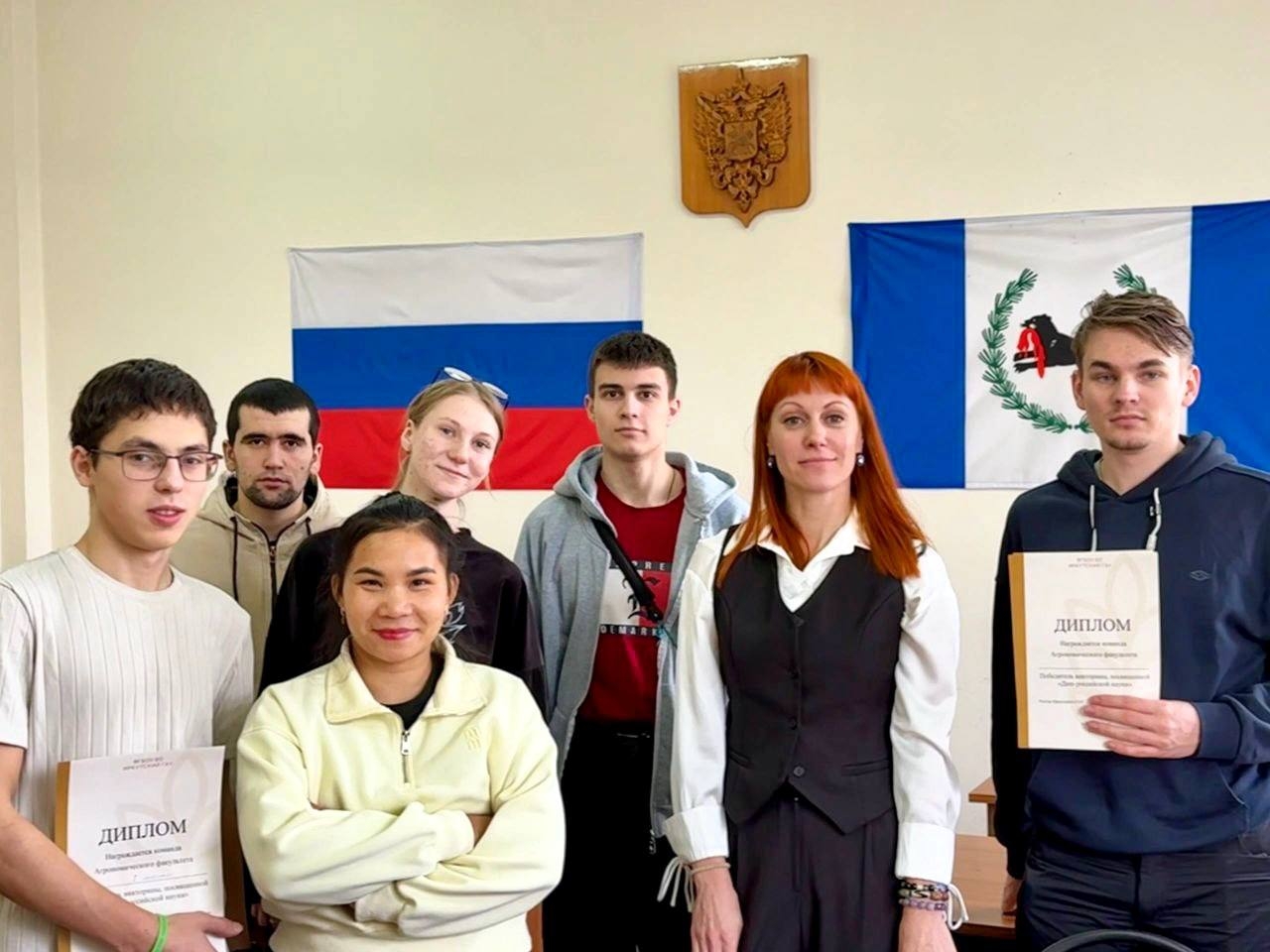 В преддверии Дня российской науки (8 февраля) на Агрономическом факультете Иркутского государственного аграрного университета имени А.А. Ежевского состоялась тематическая викторина по истории аграрной науки для студентов первого курса направлений подготовки 35.03.04 «Агрономия» и 35.03.10 «Ландшафтная архитектура». Организатором мероприятия выступила заместитель декана по воспитательной работе Зоя Козлова. Мероприятие прошло в рамках реализации федеральной кампании «Десятилетие науки и технологий» и национального проекта «Молодежь и дети».