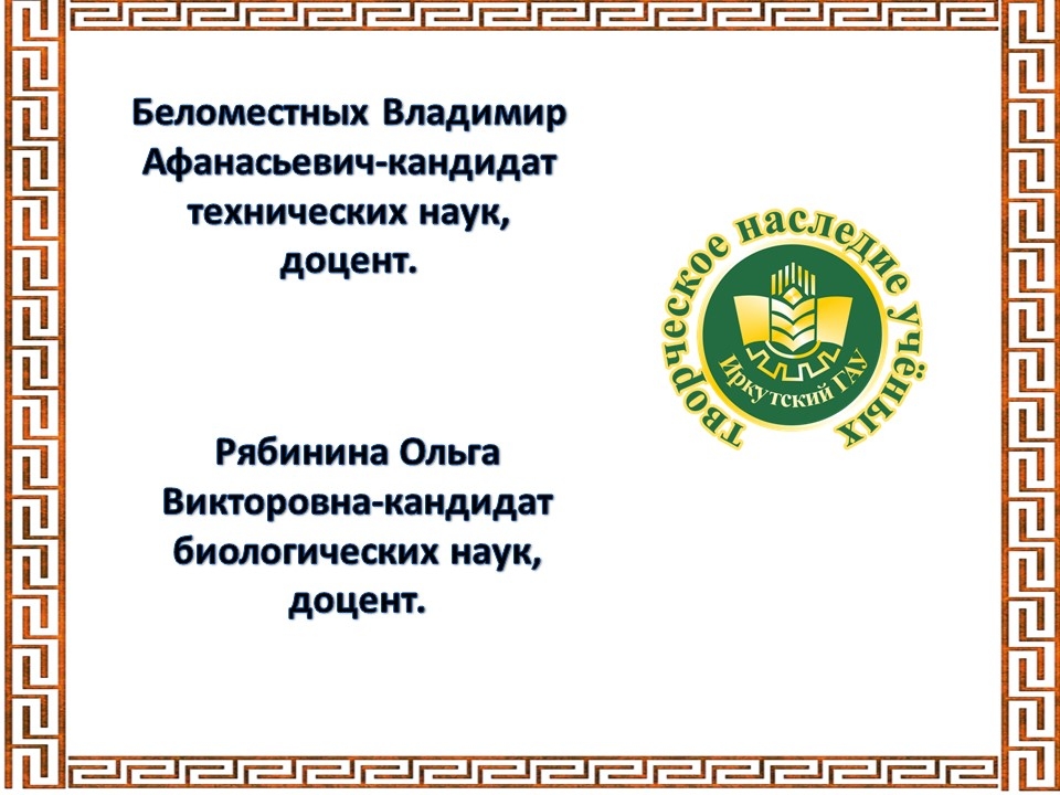 Поздравляем преподавателей нашего вуза - Ольгу Викторовну Рябинину и Владимира Афанасьевича Беломестных - с юбилейной датой!По этому случаю наша библиотека организовала экспозицию их научных работ и публикаций под названием «Научное наследие Иркутского ГАУ».
