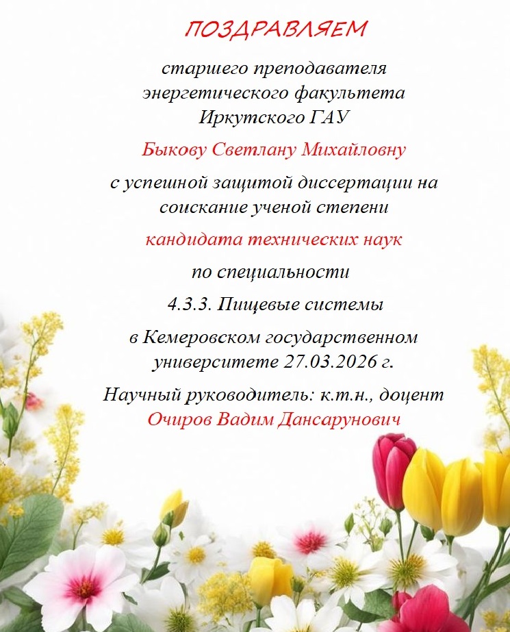 с успешной защитой дисертации на соискание ученой степени кандидата технических наук. Желаем дальнейших творческих успехов!